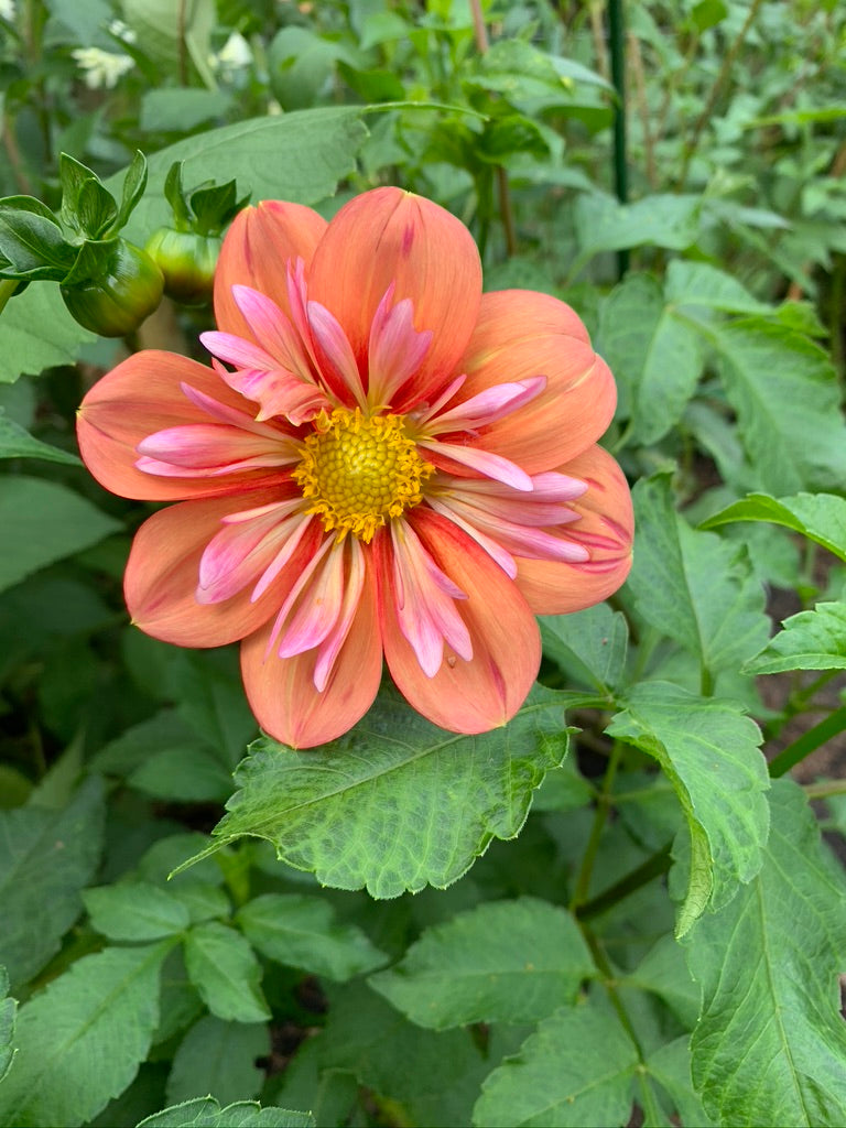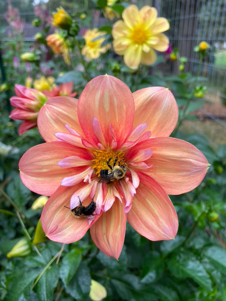 Giggles dazzles with a vibrant coral orange hue and a soft lavender pink collar, creating a unique splash of color. Beloved by buzzing bees, she brings fun and natural energy to any garden or bouquet. Add a playful pop of joy with Giggles!