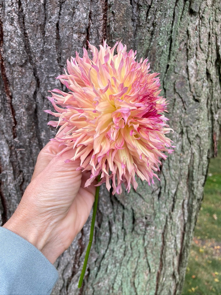 Myrtle’s Folly dances in shades from peach to warm salmon, with delicate laciniated petals that add a playful flair to any bouquet. Its strong stems keep it standing tall and proud, making it a charming standout that brings fresh interest and lively color wherever it’s placed. Perfect for brightening up your arrangements with a splash of whimsy!