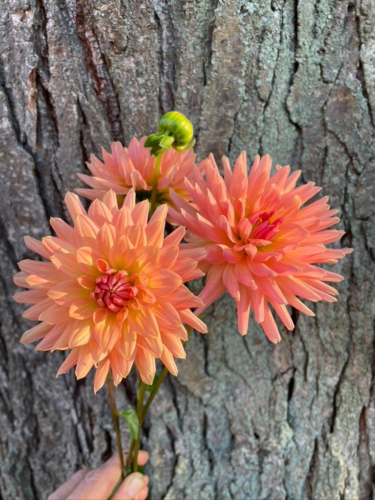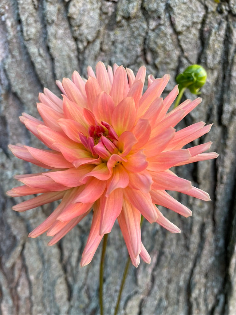 Touche bursts into bloom early, draping itself in a delightful shower of flowers. Its petals flaunt a vibrant salmon hue, cheekily revealing a subtle lavender hint on their backs. I have grown this one for years. She is a Good One!